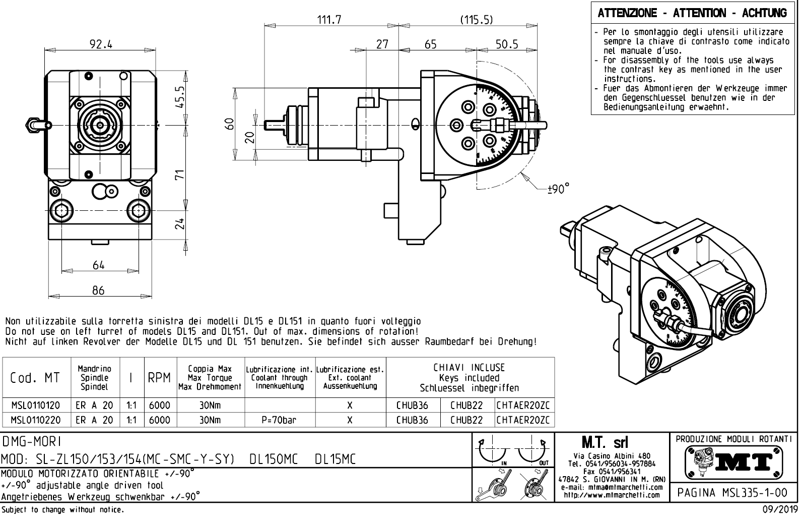 - vnitřní (max.70bar) a venkovní přívod řezné kapaliny.