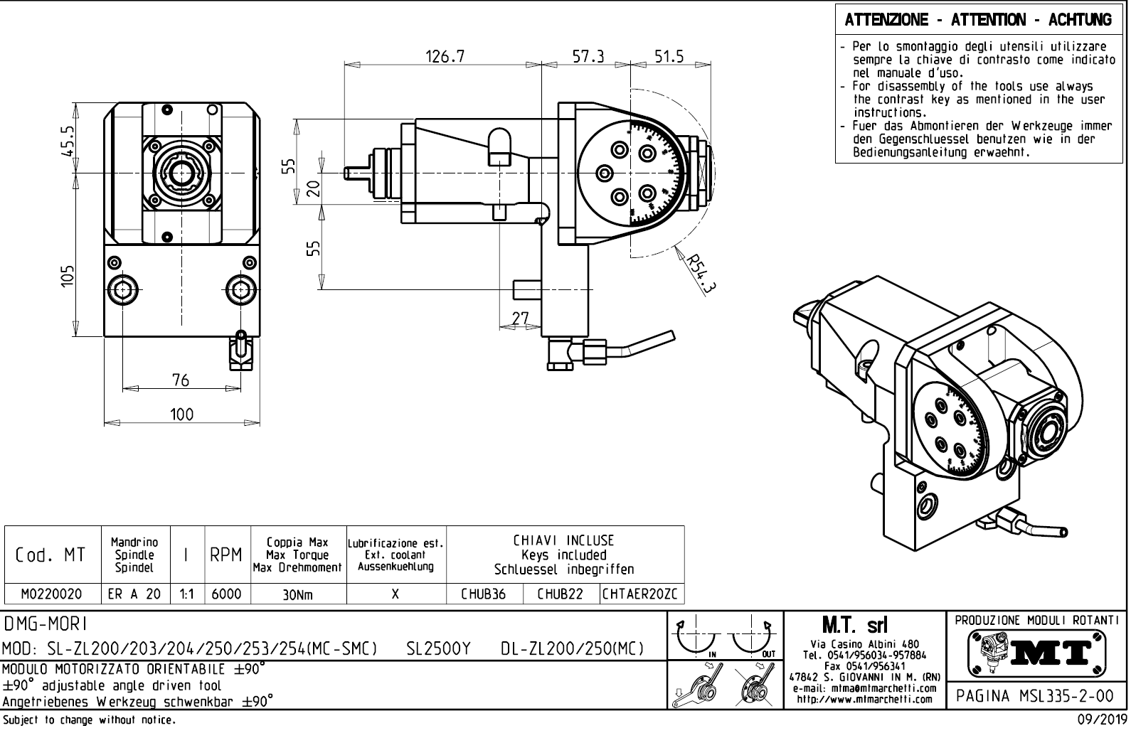 Úhlově nastavitelný rotační držák nástrojů pro stroje DMG Mori s nástrojovou hlavou SL20