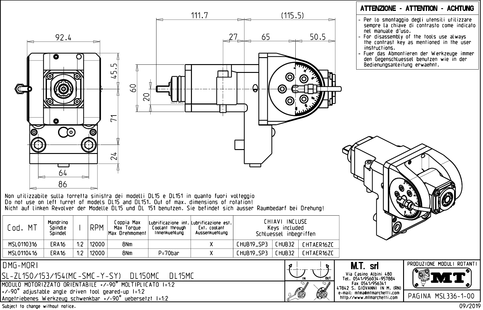 - vnitřní (max.70bar) a venkovní přívod řezné kapaliny.