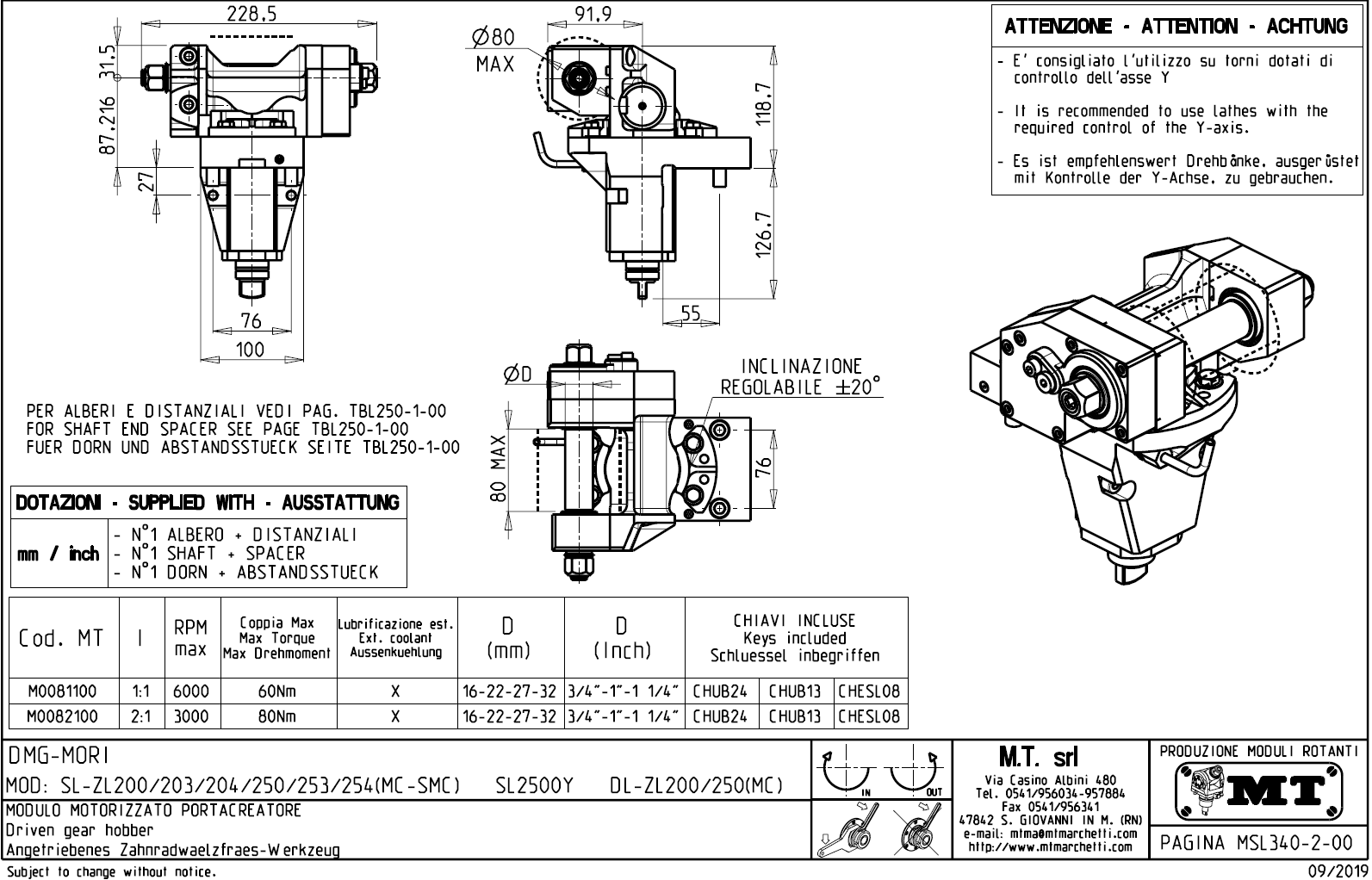 Rotační držák nástrojů pro frézování ozubení stroje DMG Mori s nástrojovou hlavou SL20.