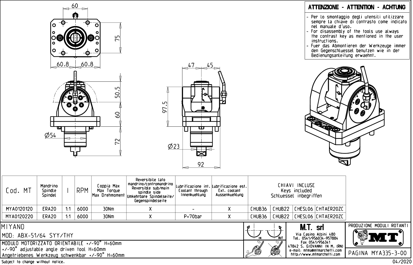 Úhlově nastavitelný rotační držák nástrojů pro stroje s nástrojovou hlavou BMT54.