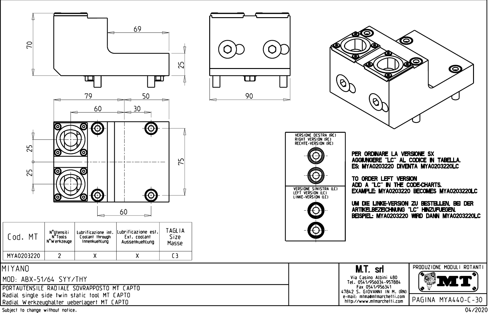- vnitřní (max.70bar) a venkovní přívod řezné kapaliny.