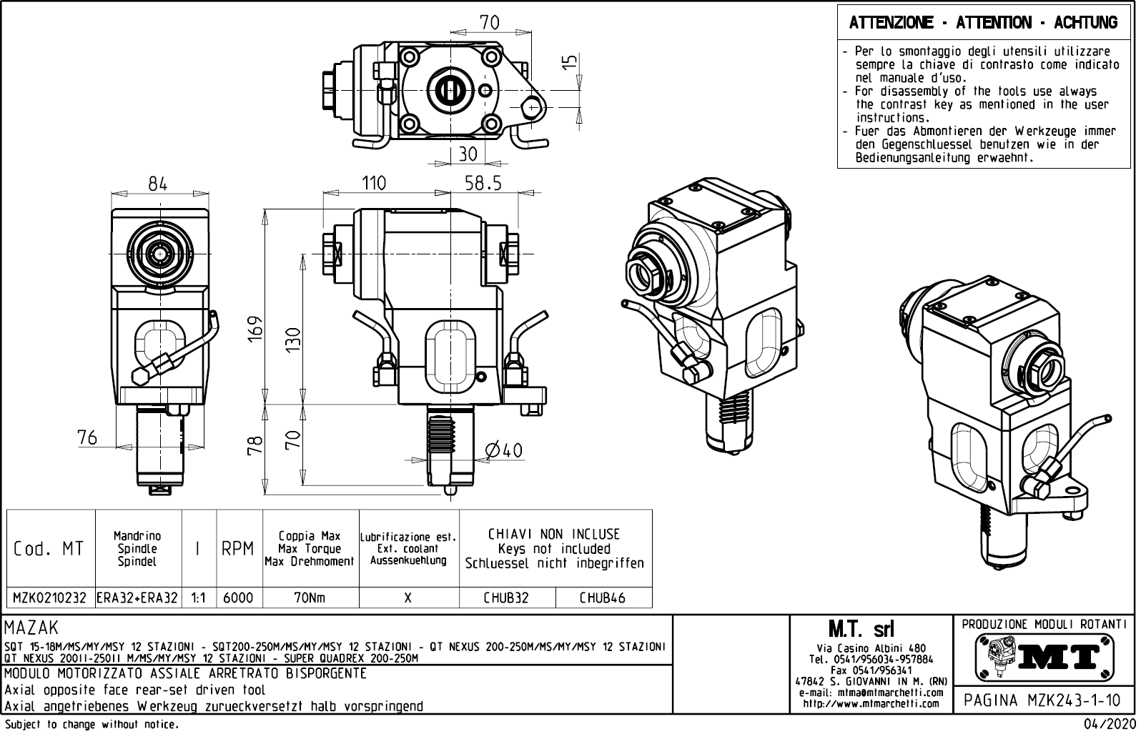- Mazak - série SQT 200 - 250 M / MS / MY / MSY s 12-ti polohovou hlavou
