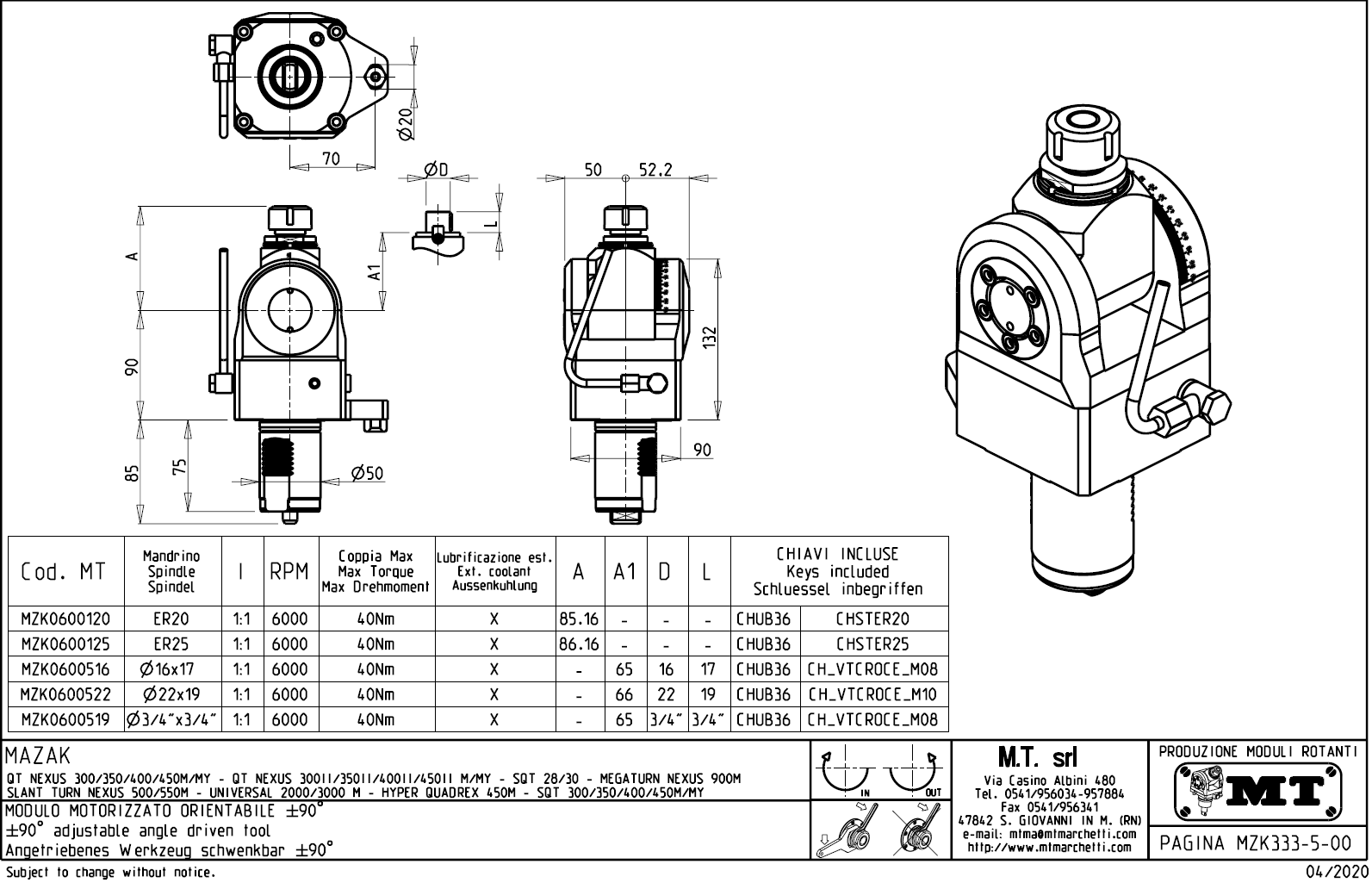 Úhlově nastavitelný rotační držák nástrojů pro stroje s nástrojovou hlavou VDI50