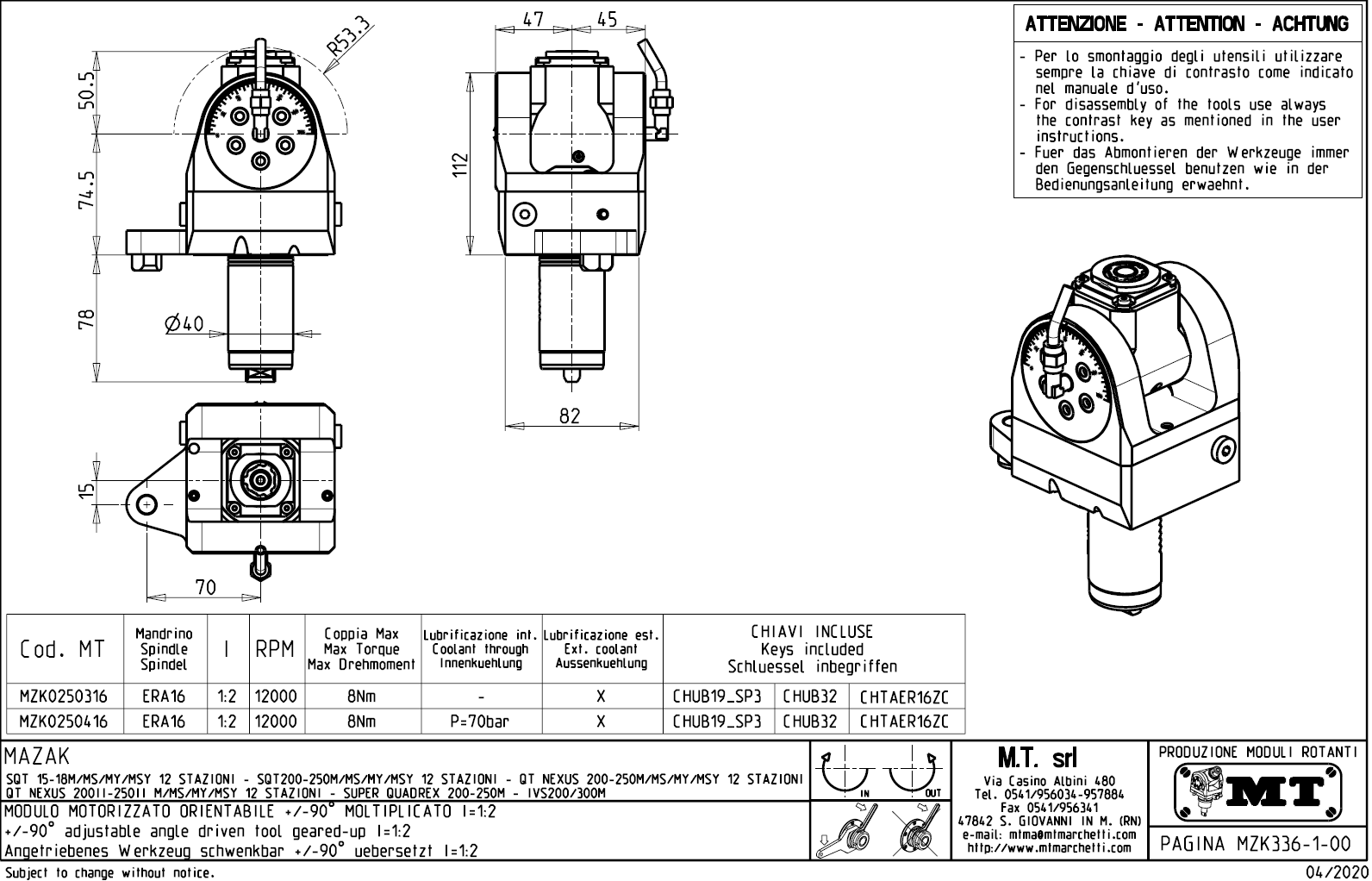 - Mazak - série SQT 200 - 250 M / MS / MY / MSY s 12-ti polohovou hlavou