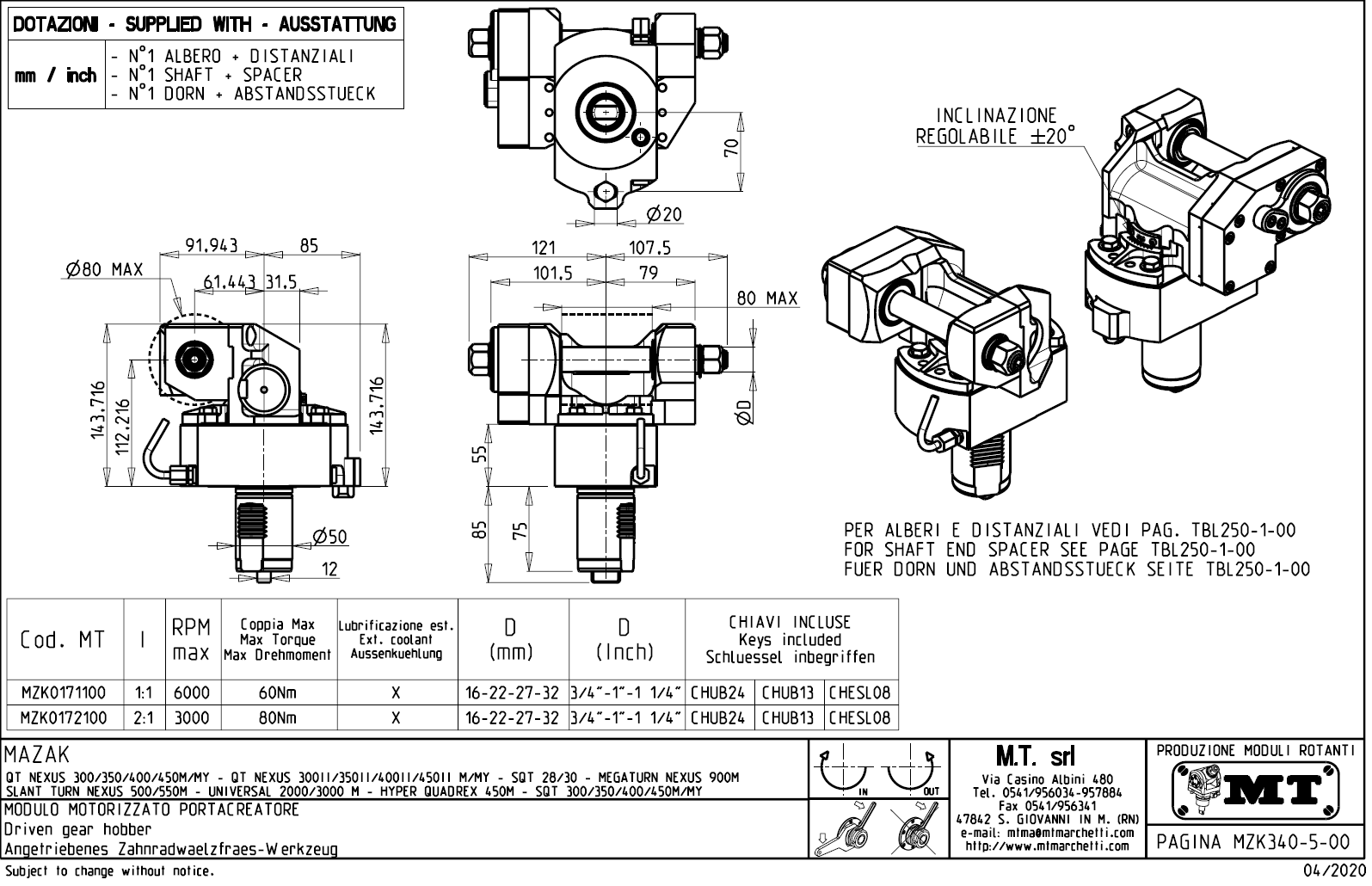 - Mazak - série QT NEXUS 300II / 350II / 400II / 450II M / MY