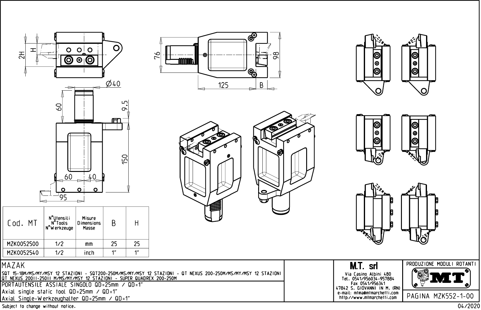 - Mazak - série SQT 200 - 250 M / MS / MY / MSY s 12-ti polohovou hlavou