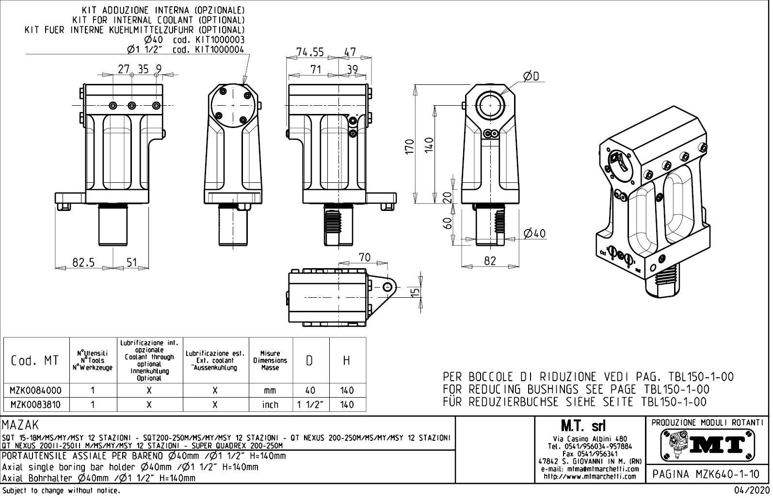 - pro použití vnitřního přívodu chladící kapaliny musí být použit zaslepovací kit, který není součástí standadní dodávky.