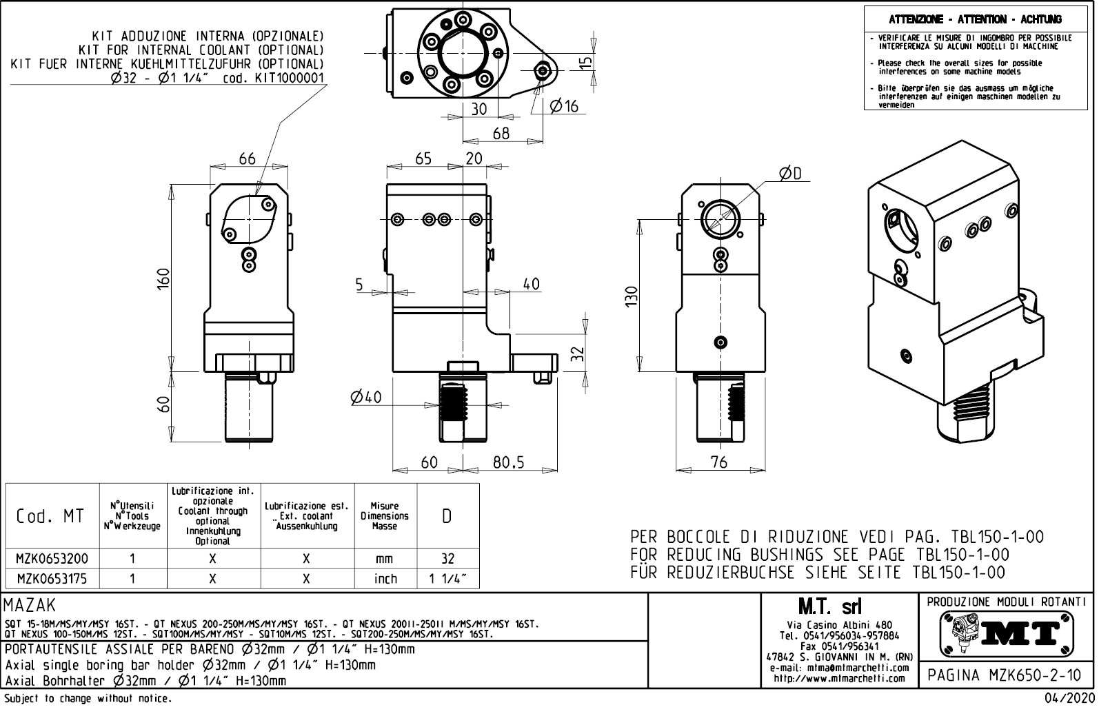 - pro použití vnitřního přívodu chladící kapaliny musí být použit zaslepovací kit, který není součástí standadní dodávky.