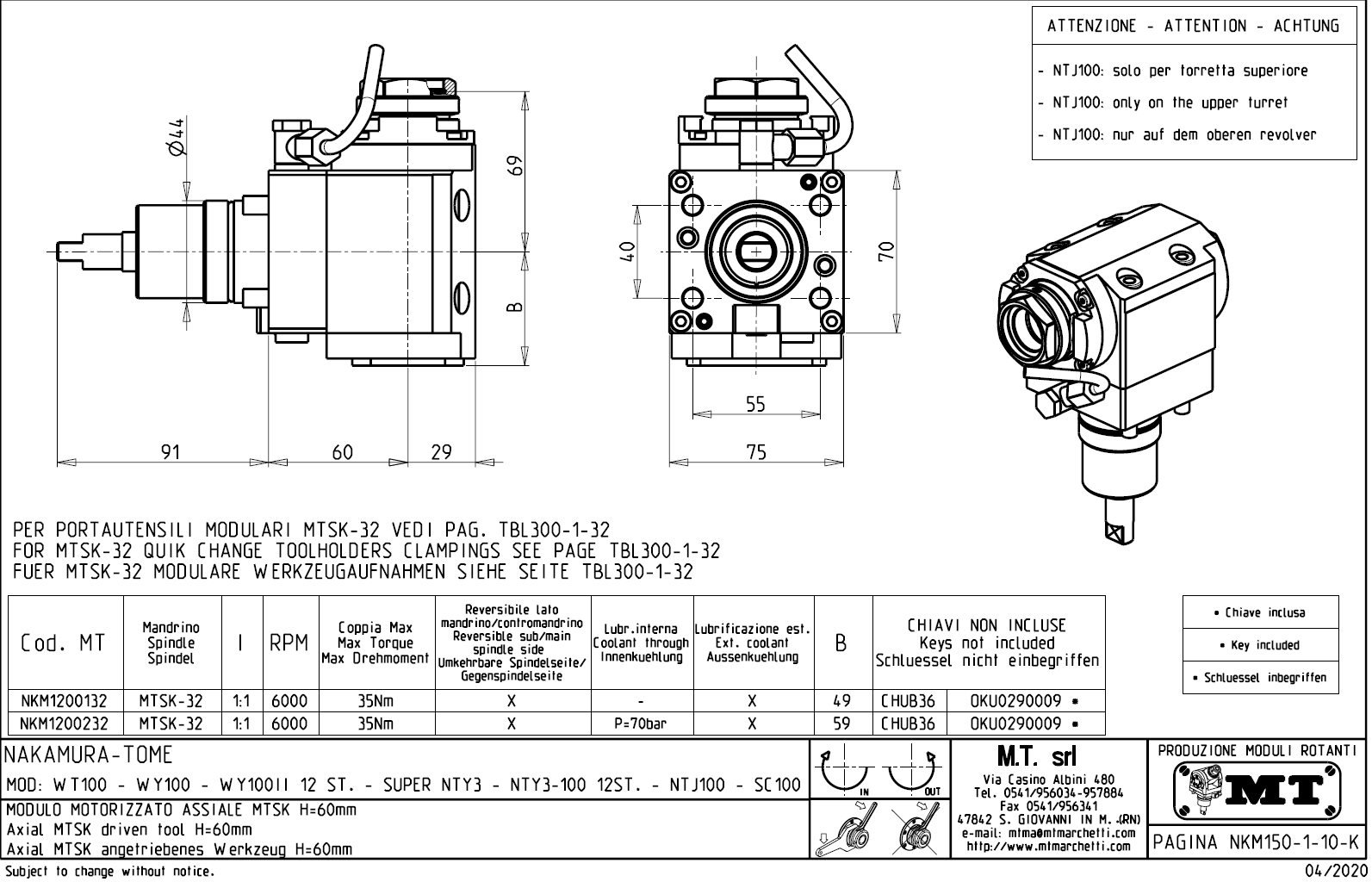 Axiální rotační držák nástrojů pro stroje s nástrojovou hlavou BMT44