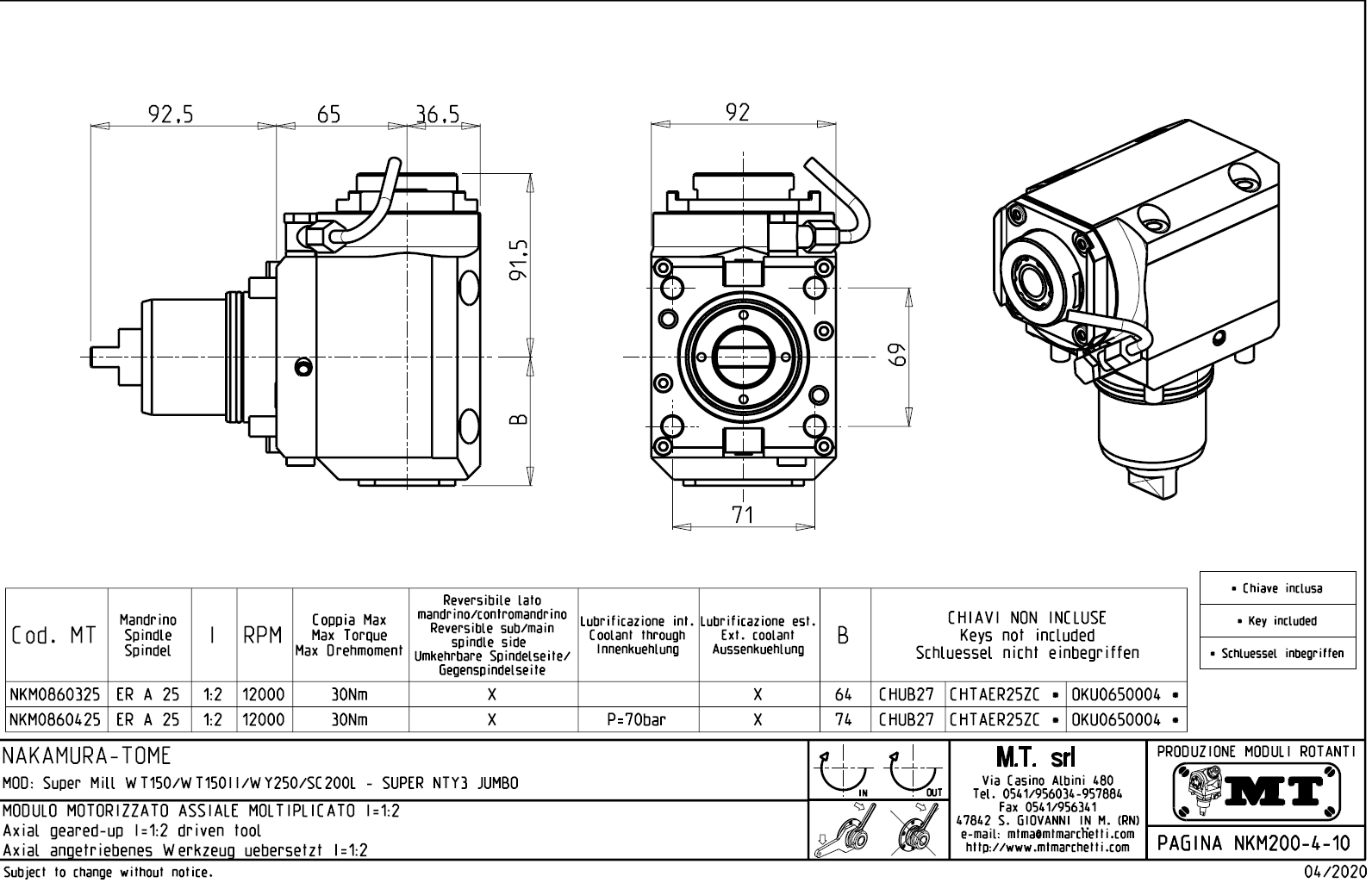 - Nakamura-Tome - série SUPER MILL WT 150 / 150 II / WY 250 / SC 200 L