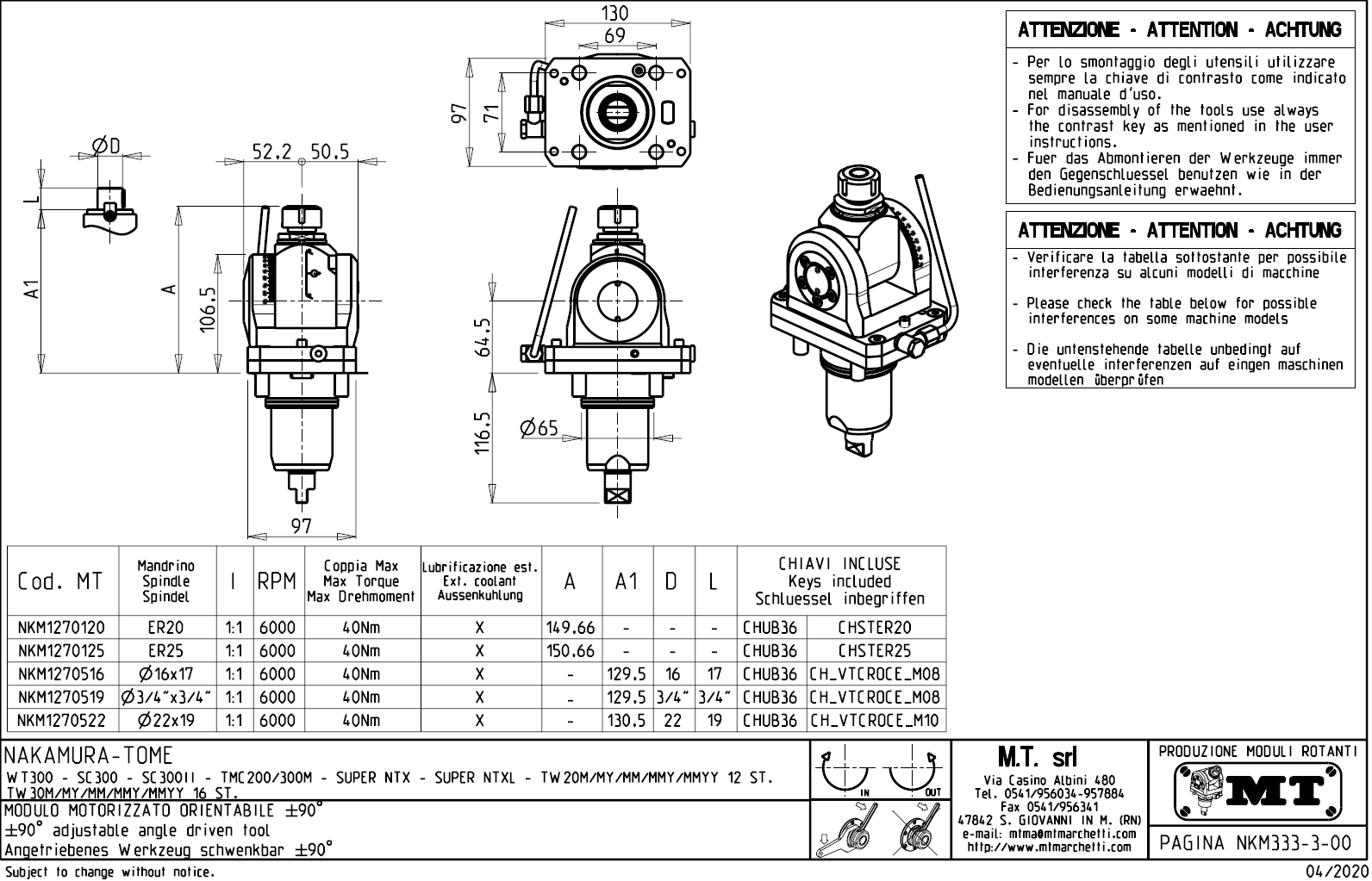 • Nakamura-Tome - série TW 30 M / MY / MM / MMY / MMYY s 16-ti polohovou hlavou