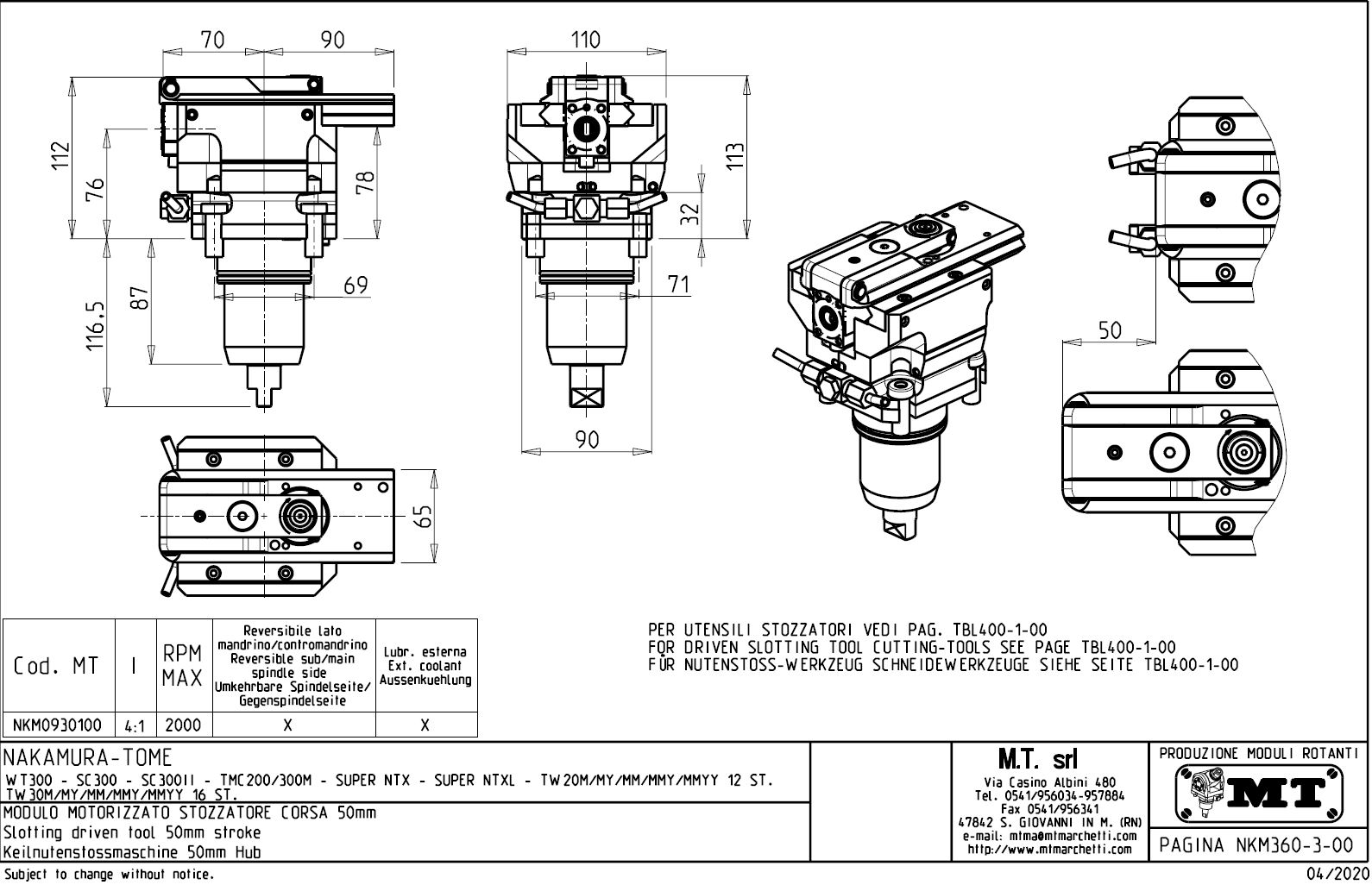 - Nakamura-Tome - série TMC 200 / 300 M