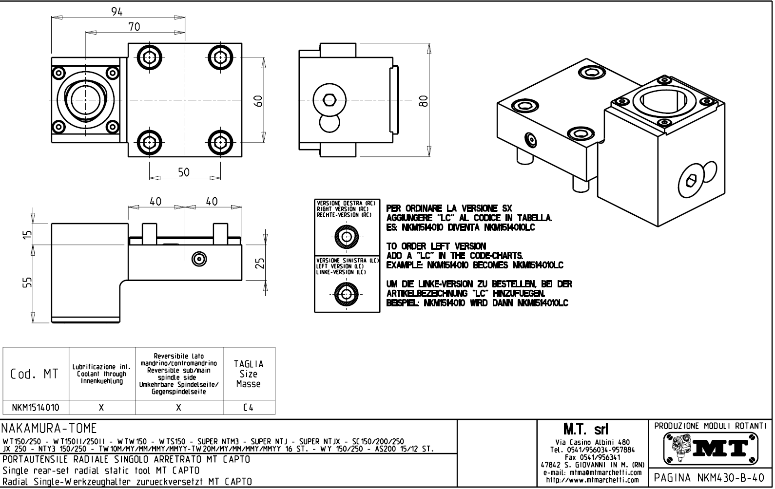 - Nakamura-Tome - série SC 150 / 200 / 250