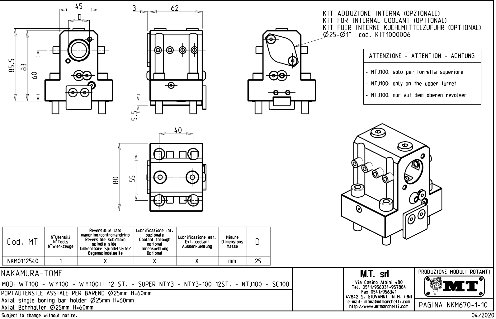 - pro použití vnitřního přívodu chladící kapaliny musí být použit zaslepovací kit, který není součástí standadní dodávky.