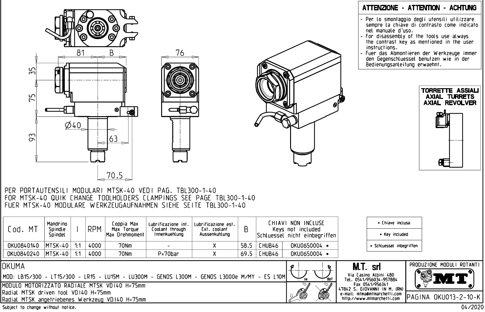 - vnitřní (max.70bar) a venkovní přívod řezné kapaliny.