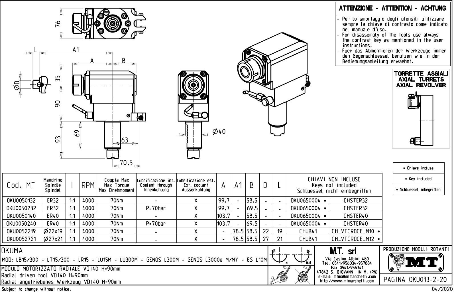 Radiální rotační držák nástrojů pro stroje s nástrojovou hlavou VDI40.