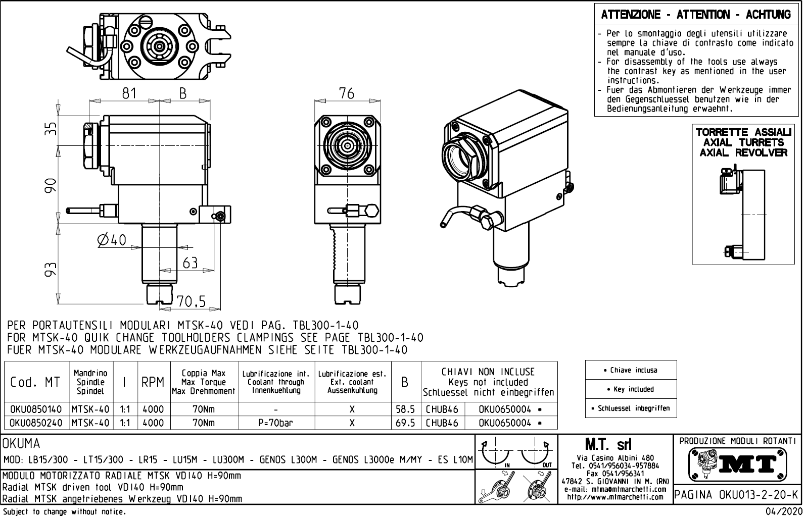• upnutí nástroje pomocí: rychlovýměnného modulárního systému MTSK.