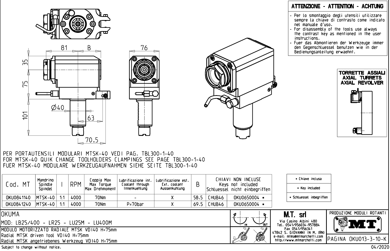 - upnutí nástroje pomocí: rychlovýměnného modulárního systému MTSK.
