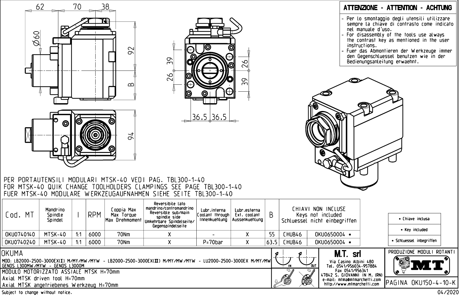- Okuma - série LB 2000 / 2500 / 3000 EX (II) M / MY / MW / MYW