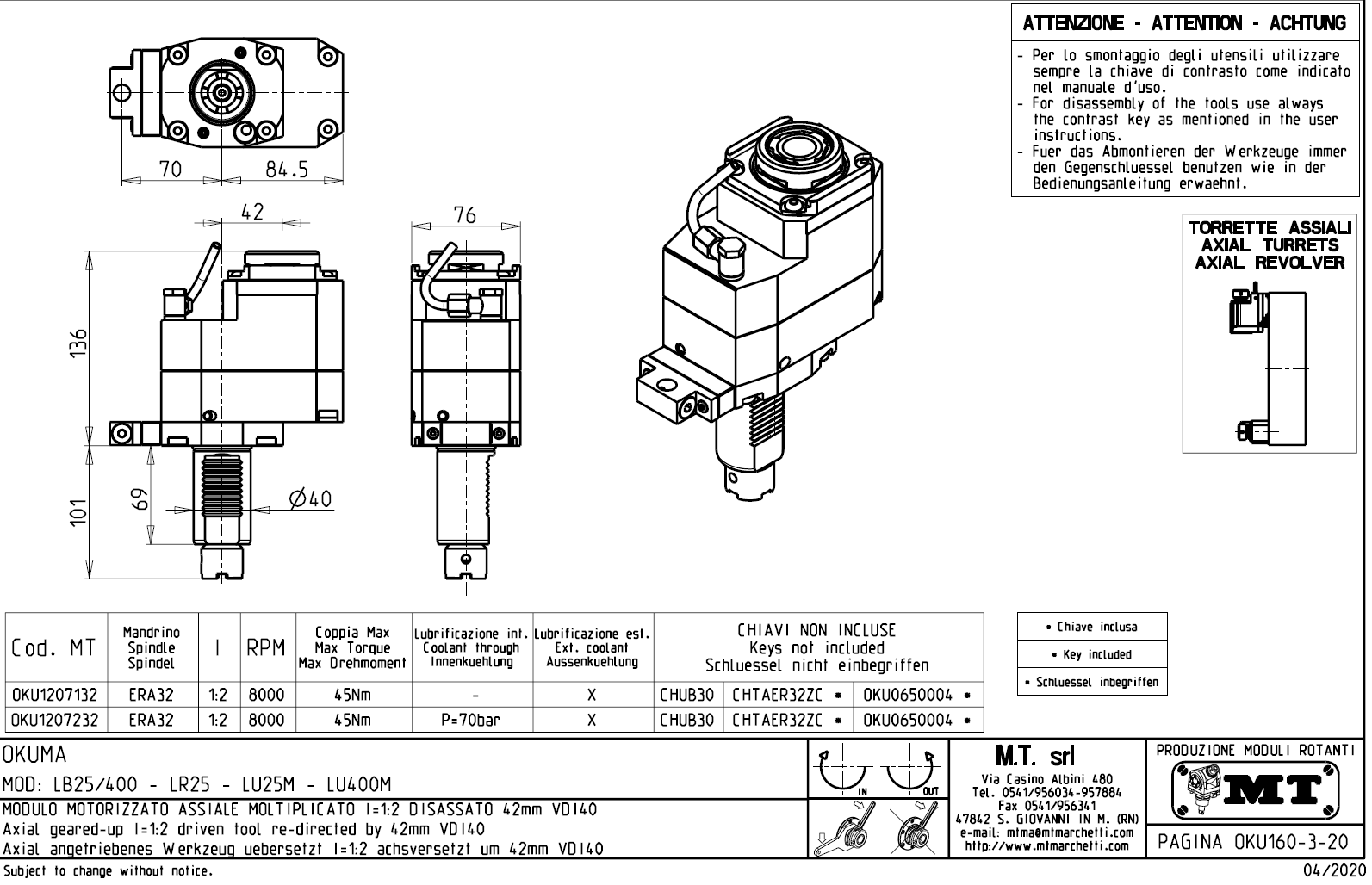 - vnitřní (max.70bar) a venkovní přívod řezné kapaliny.