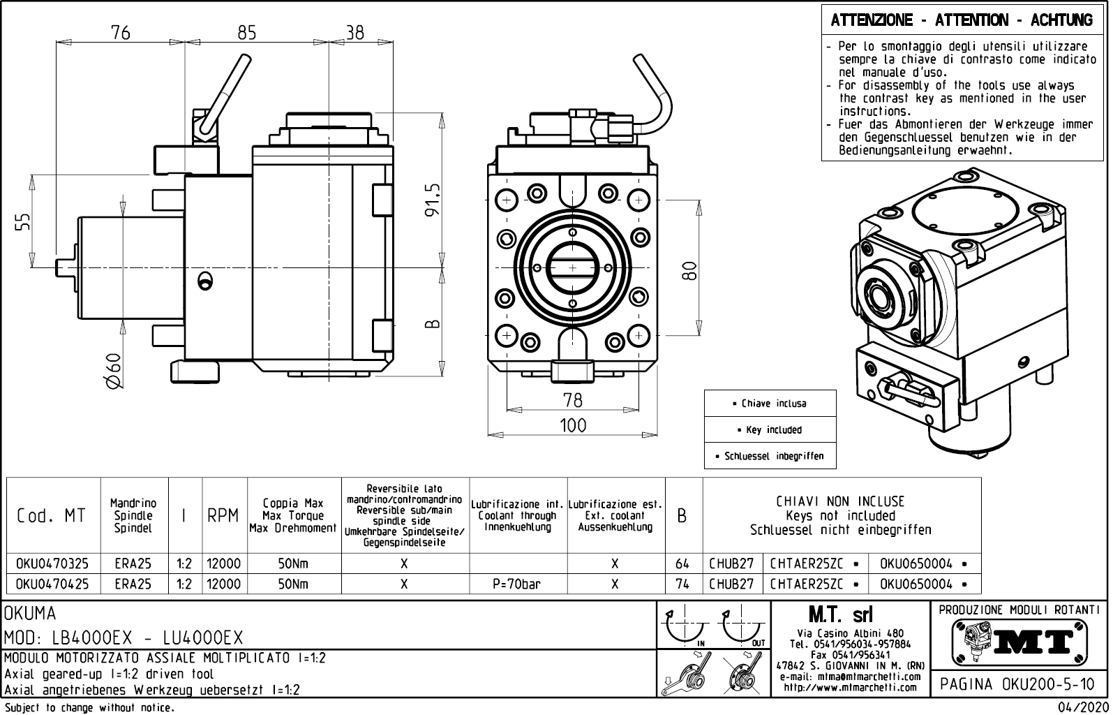 - vnitřní (max.70bar) a venkovní přívod řezné kapaliny.