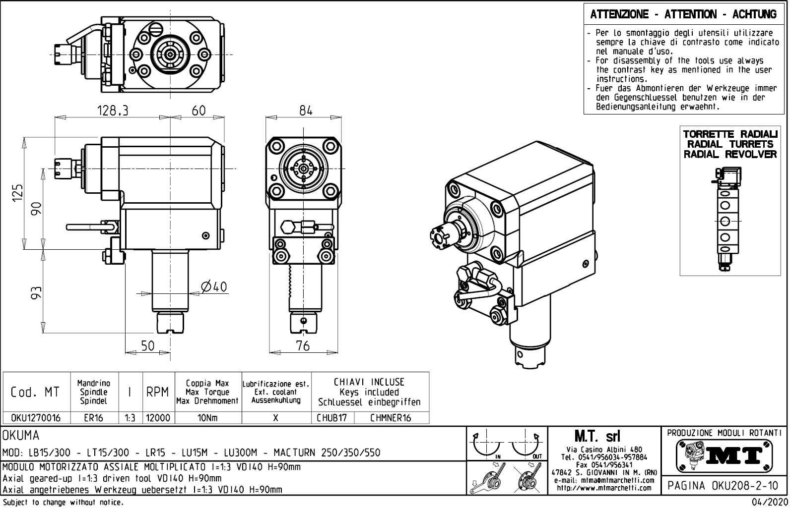 Axiální rotační držák nástrojů pro stroje s nástrojovou hlavou VDI40.