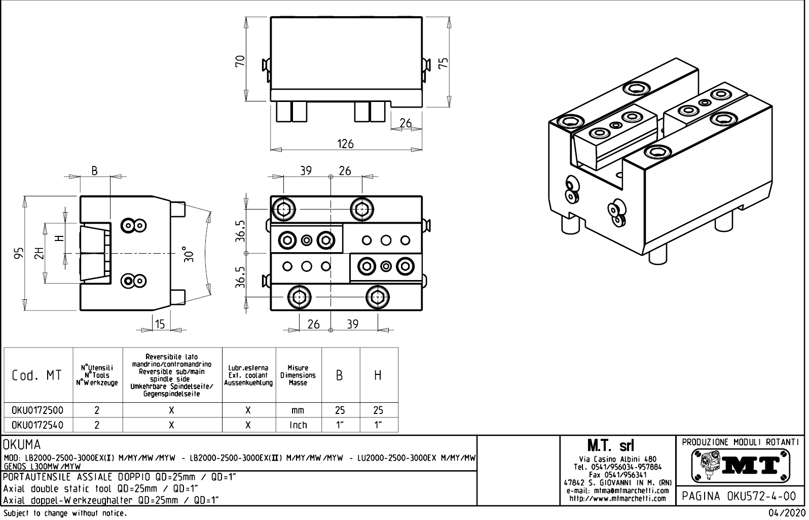 - Okuma - série LB 2000 / 2500 / 3000 EX (I) M / MY / MW / MYW