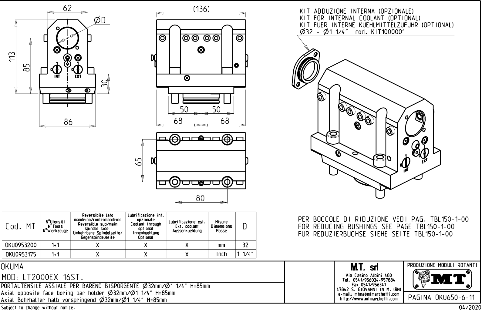 • pro použití vnitřního přívodu chladící kapaliny musí být použit zaslepovací kit, který není součástí standadní dodávky.
