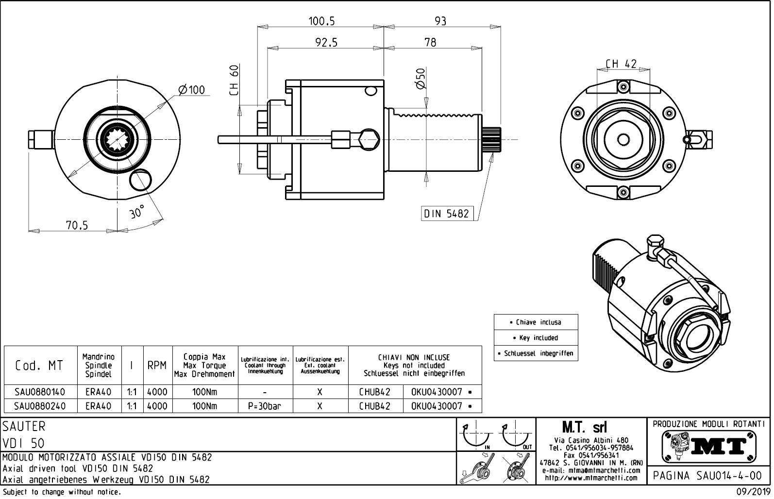 - vnitřní (max.30bar) a venkovní přívod řezné kapaliny.