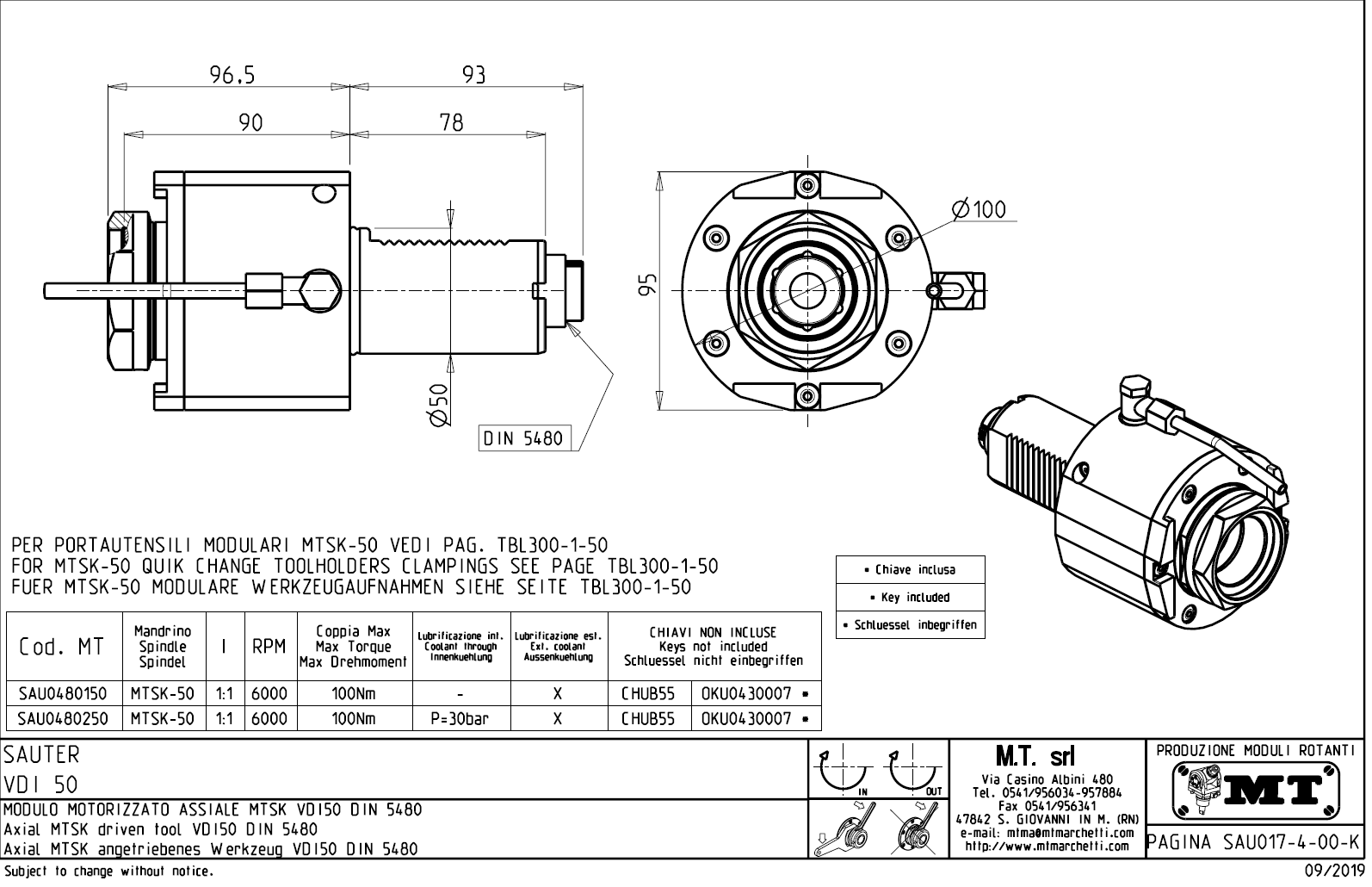 - upnutí nástroje pomocí: rychlovýměnného modulárního systému MTSK.