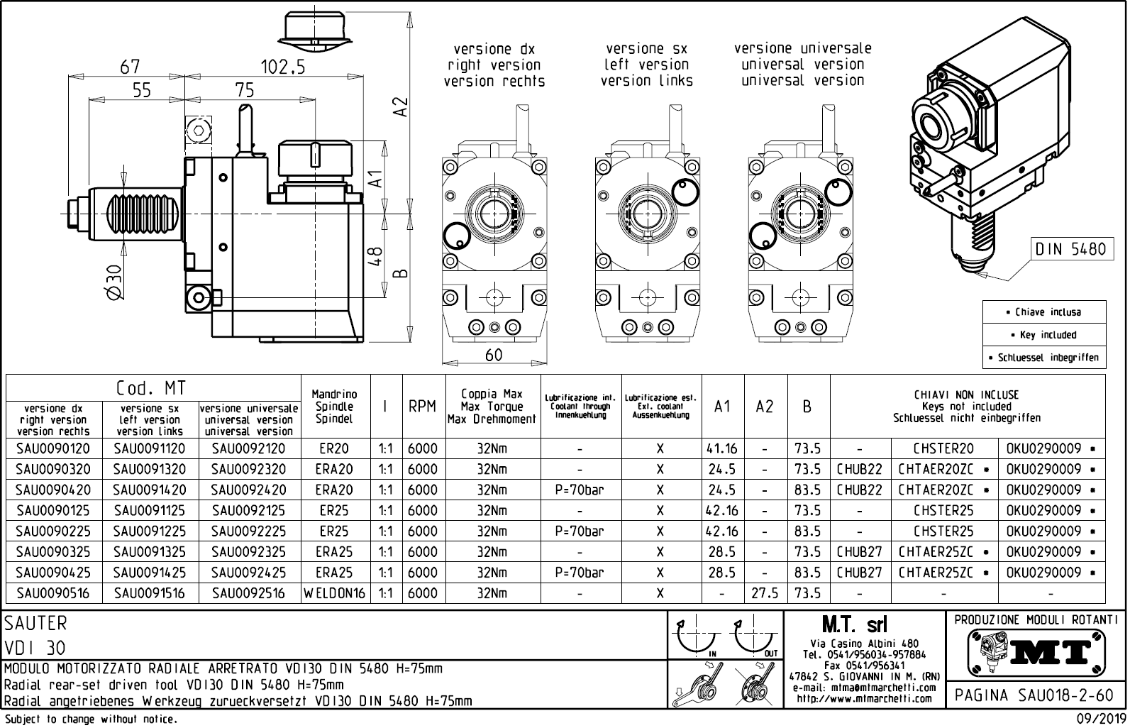 Radiální rotační držák nástrojů pro stroje Sauter s nástrojovou hlavou VDI30.