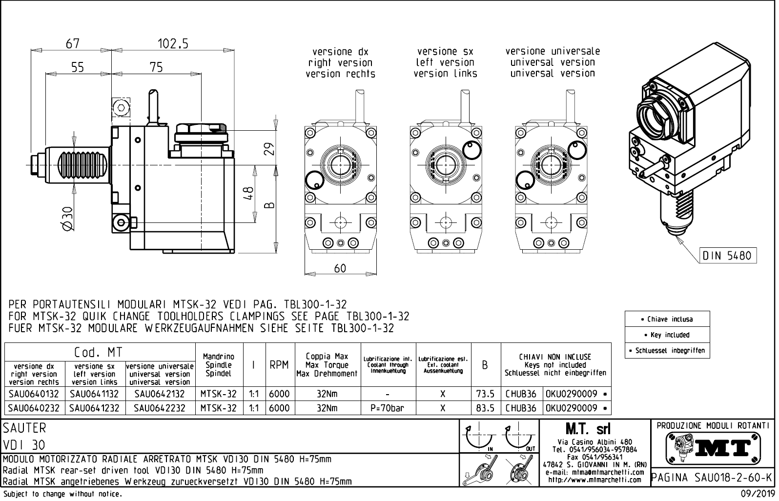 - upnutí nástroje pomocí: rychlovýměnného modulárního systému MTSK.