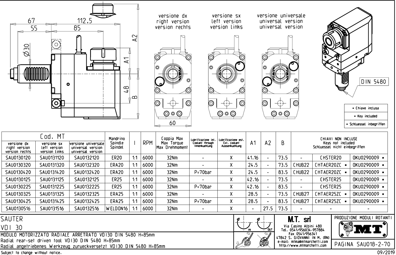 - vnitřní (max.70bar) a venkovní přívod řezné kapaliny.