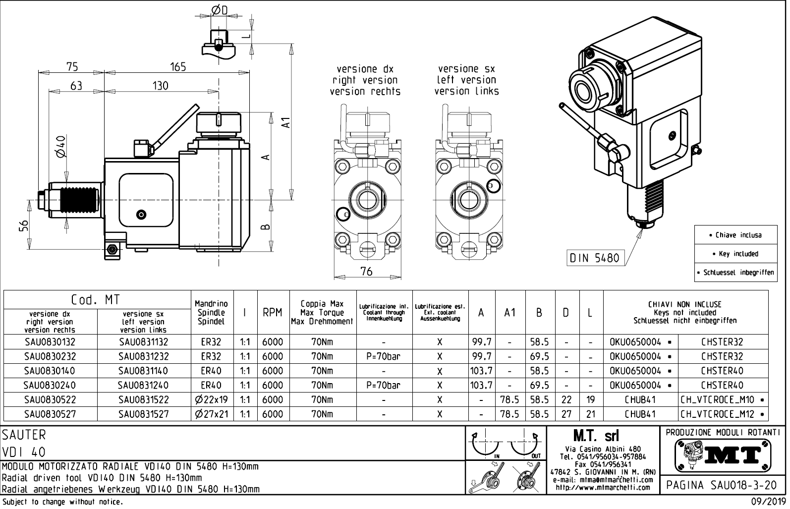 Radální rotační držák nástrojů pro stroje Sauter s nástrojovou hlavou VDI40.
