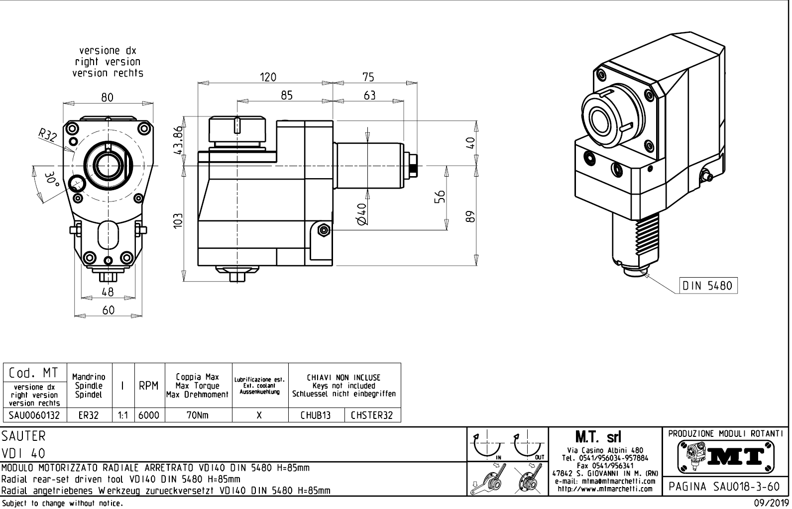 Radální rotační držák nástrojů pro stroje Sauter s nástrojovou hlavou VDI40.