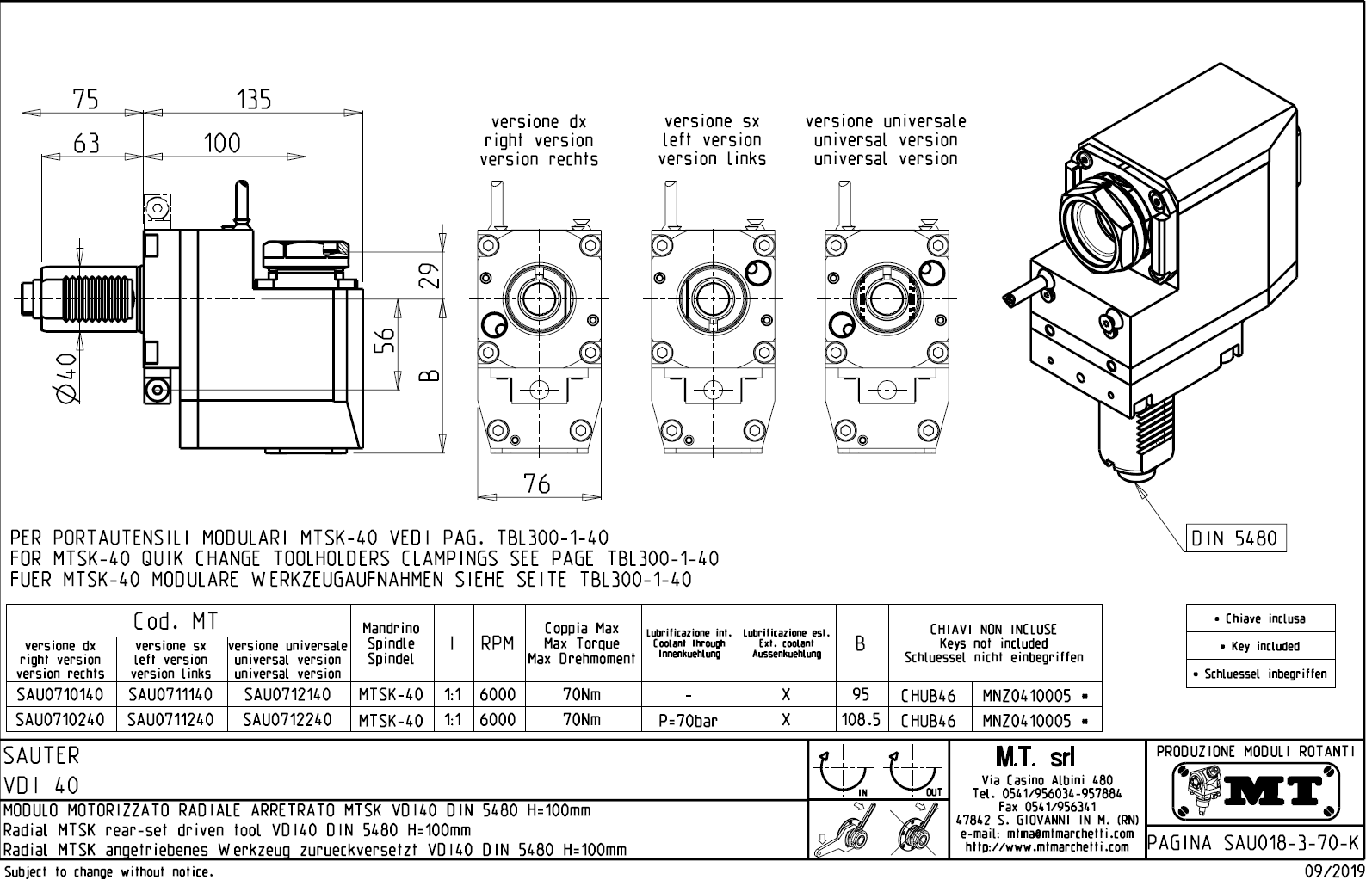 - upnutí nástroje pomocí: rychlovýměnného modulárního systému MTSK.