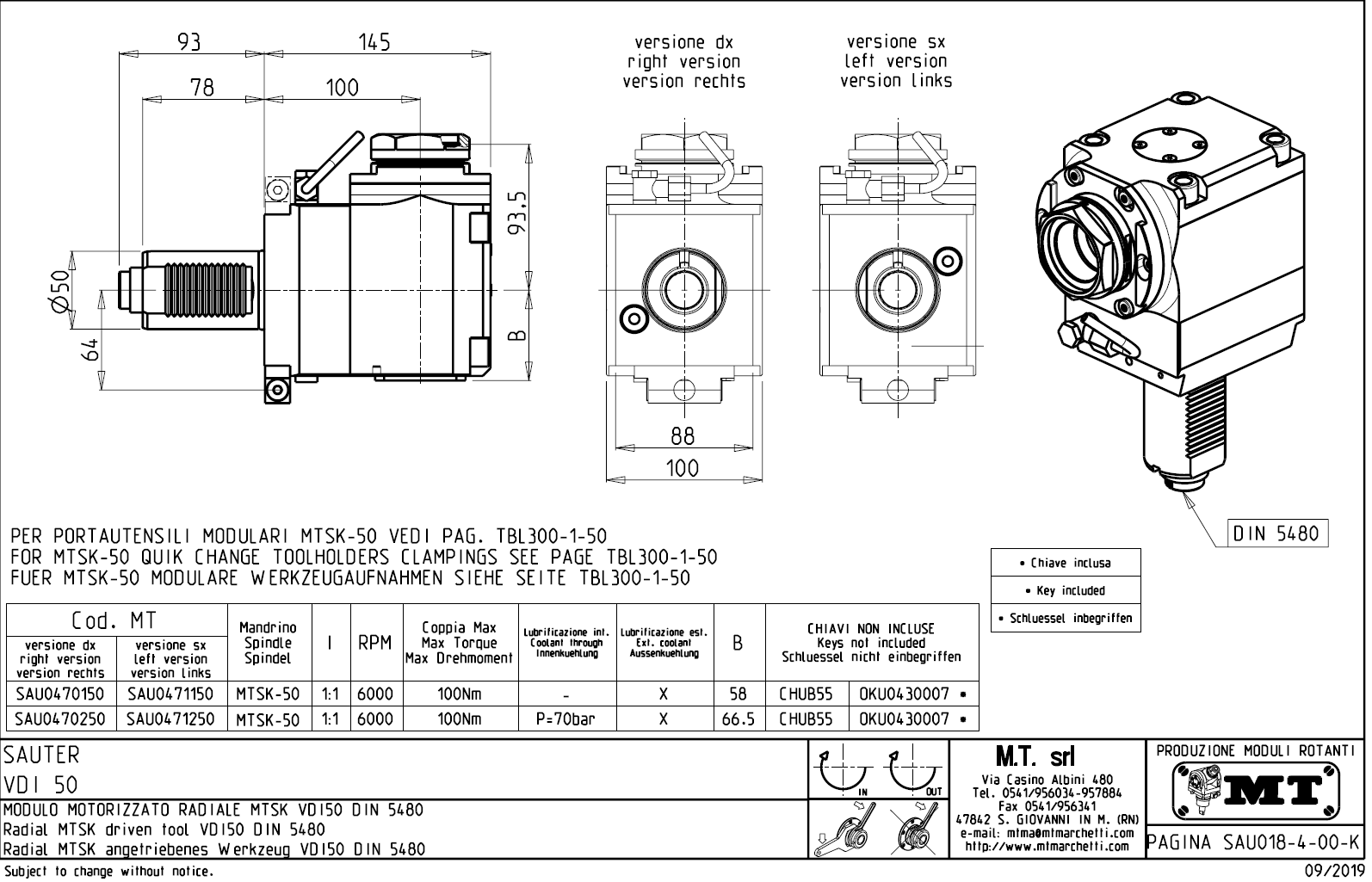 Radiální rotační držák nástrojů pro stroje Sauter s nástrojovou hlavou VDI50.
