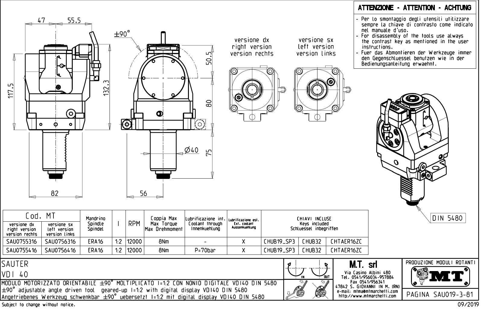 - vnitřní (max.70bar) venkovní přívod řezné kapaliny.