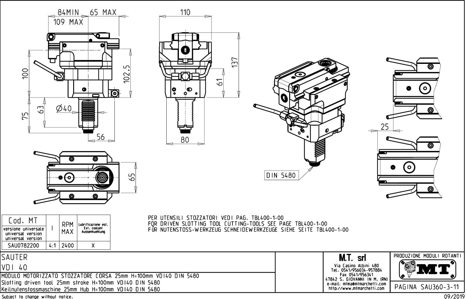 Rotační držák nástrojů pro obrábění drážek pro stroje Sauter s nástrojovou hlavou VDI40.