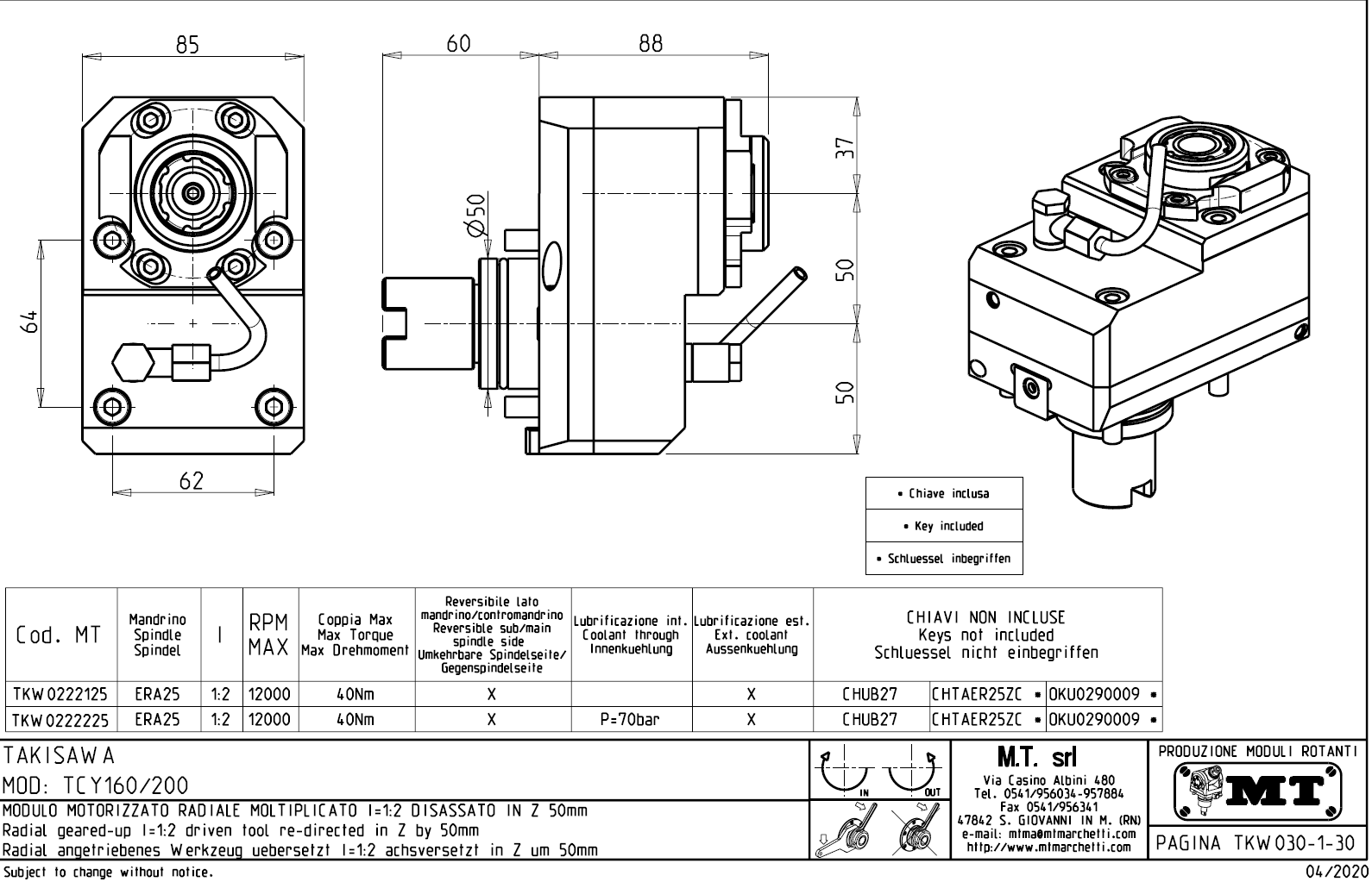 - Takisawa - série TCY 160 / 200