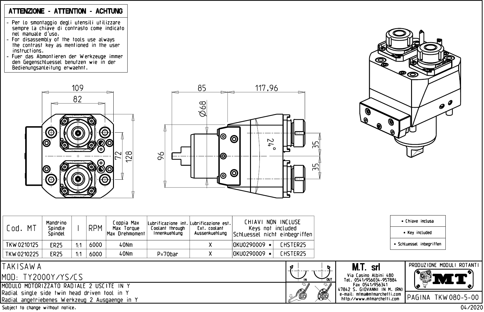 - vnitřní (max.70bar) a venkovní přívod řezné kapaliny.