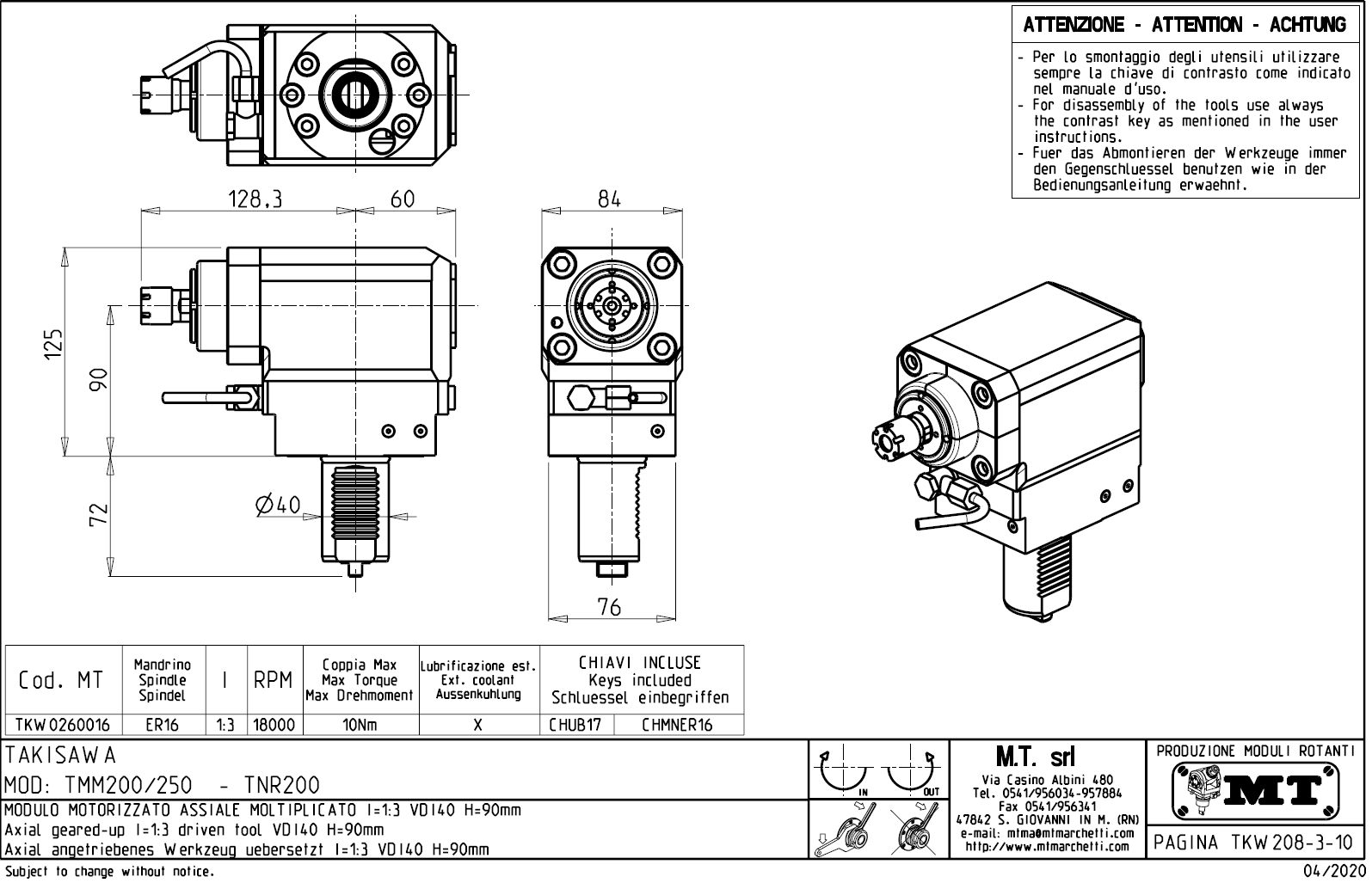 Axiální rotační držák nástrojů pro stroje s nástrojovou hlavou VDI40.