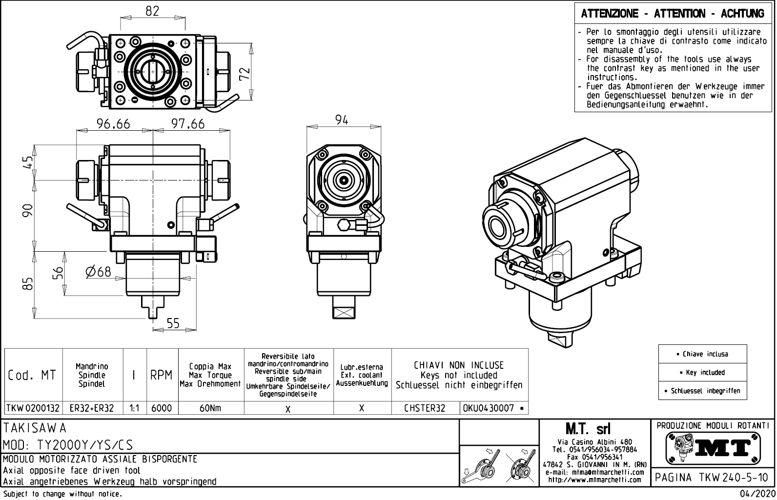 Axiální rotační držák nástrojů pro stroje s nástrojovou hlavou BMT68.