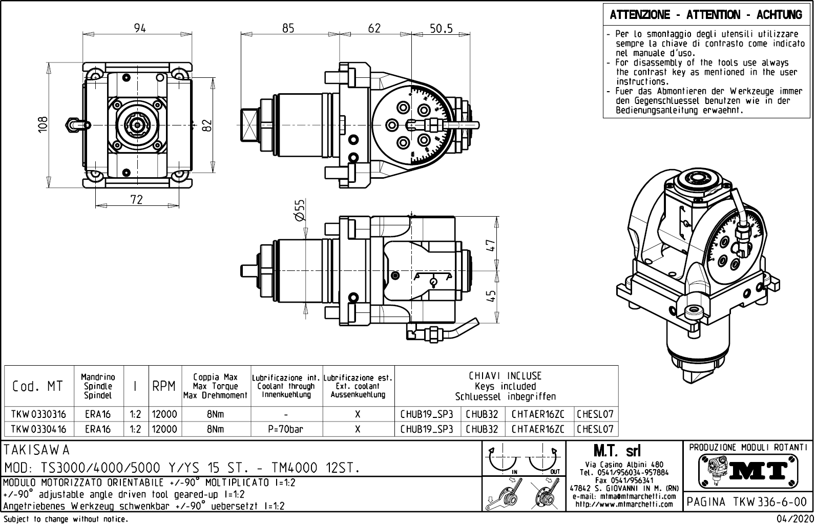 - Takisawa - série TM4000 s 12-ti polohovou hlavou