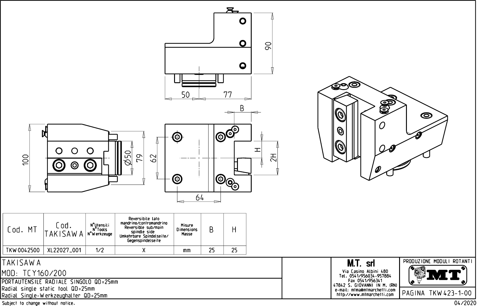 Radiální, pevný (statický) nástrojový držák pro stroje s nástrojovou hlavou typu BMT50.