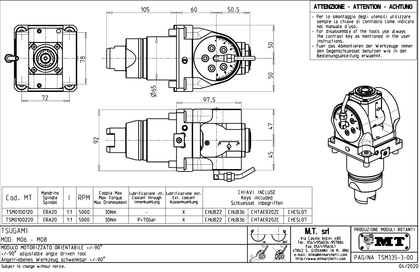 - vnitřní (max.70bar) a venkovní přívod řezné kapaliny.