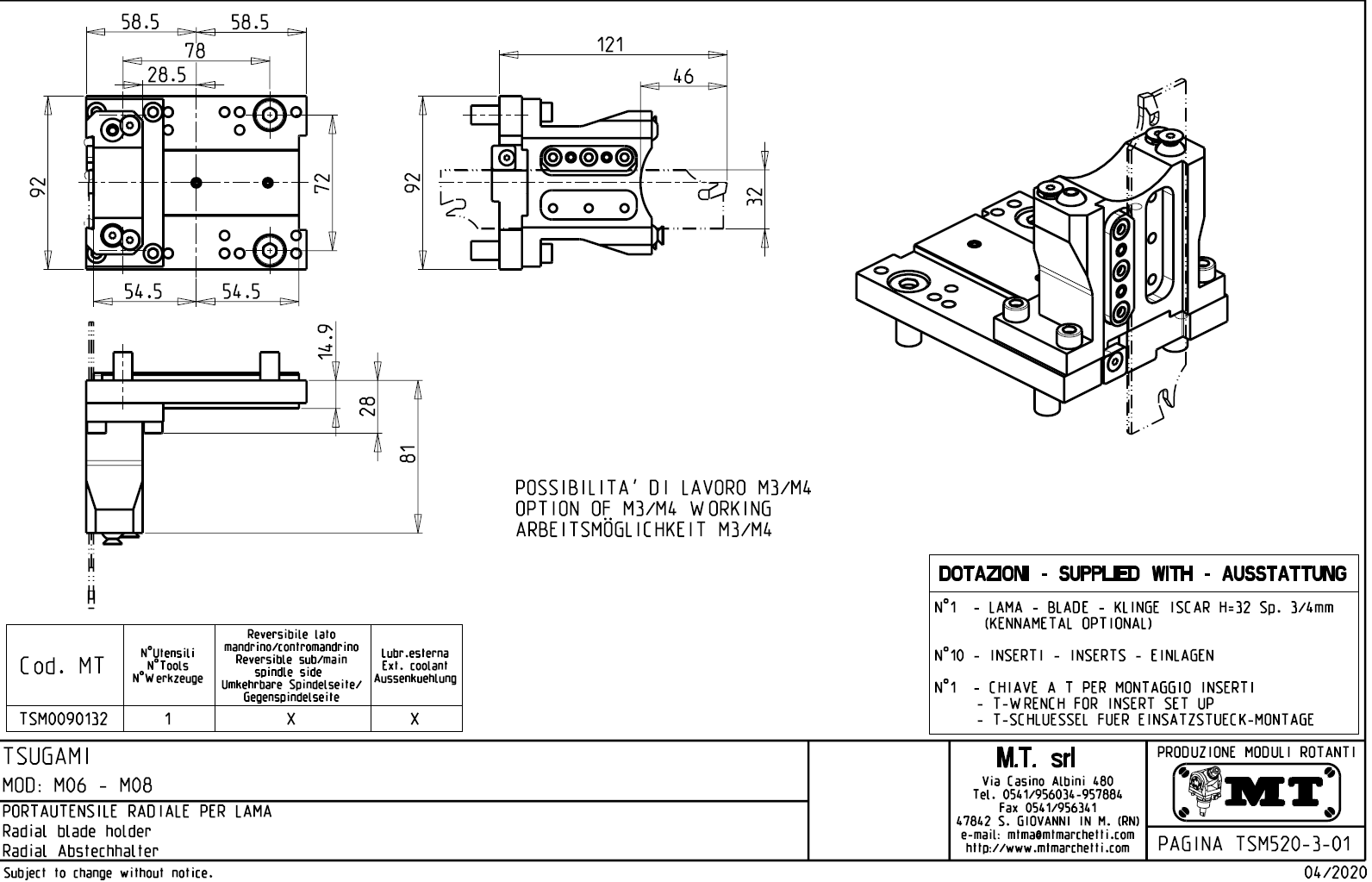 Radiální pevný držák nástrojů pro vnější zapichování a upichování: